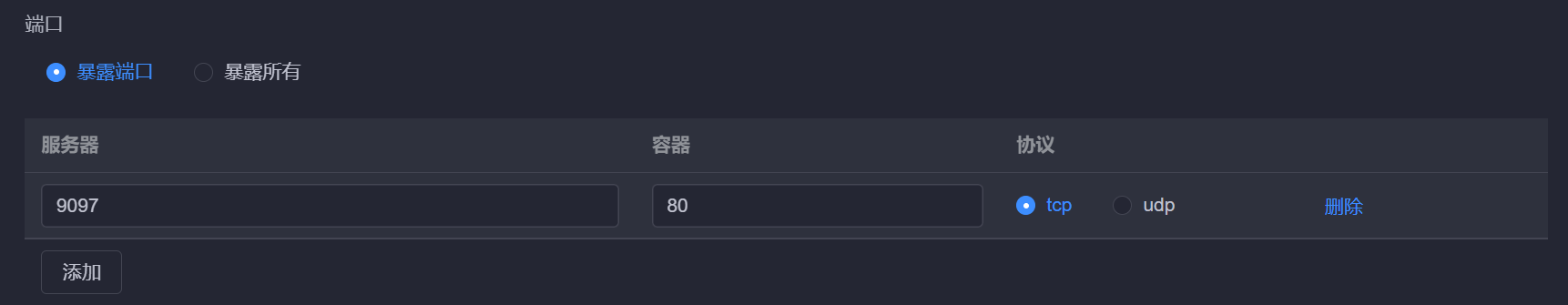 首先创建metacubexd-ui,端口设置如下: