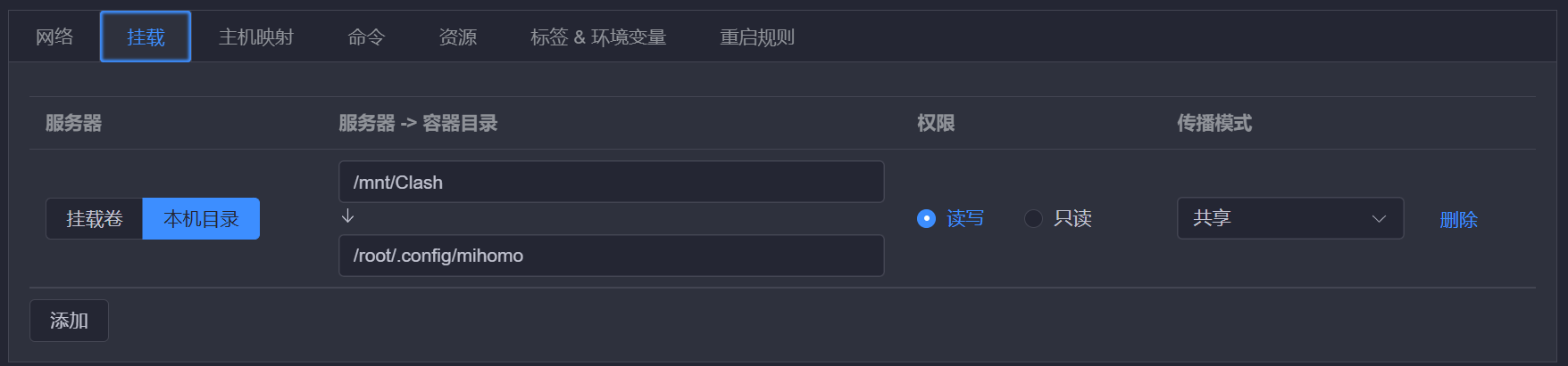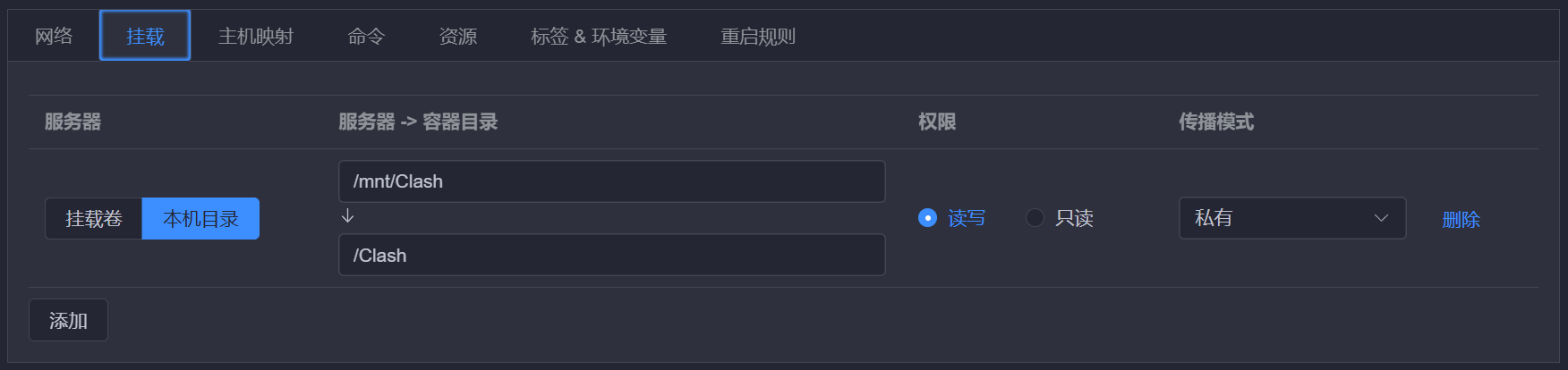 挂载位置‘本地目录|服务器目录’更具自己的具体位置填写,重点:此处的容器目录一定要这么填写不然无法成功